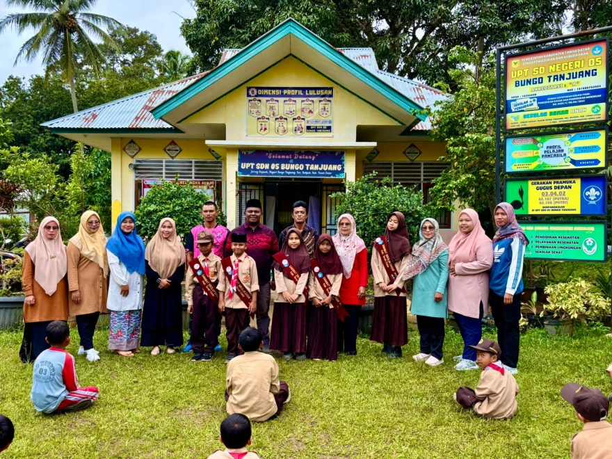 Bungo Tanjuang,- Wali Nagari Bungo Tanjuang Lepas Keberangkatan Duta Sahabat Sekolah Dari UPT SD 05 Bungo Tanjuang, keberangakatan ini merupakan hasil seleksi ditingkat Provinsi dan berlanjut hingga ke nasional.