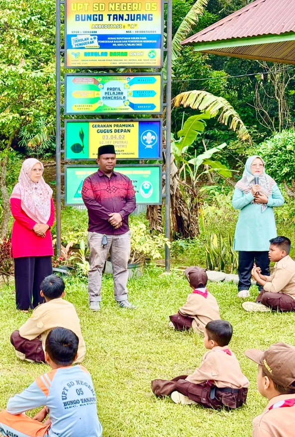 Bungo Tanjuang,- Wali Nagari Bungo Tanjuang Lepas Keberangkatan Duta Sahabat Sekolah Dari UPT SD 05 Bungo Tanjuang, keberangakatan ini merupakan hasil seleksi ditingkat Provinsi dan berlanjut hingga ke nasional.