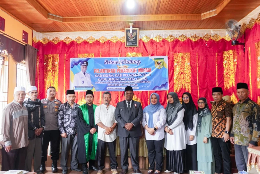 Bungo Tanjuang, Rabu 17 Desember 2025 – Pemerintah Nagari Bungo Tanjuang melaksanakan kegiatan Pelantikan Kepala Seksi Pelayanan dan Kepala Urusan Tata Usaha dan Umum pada Rabu, 17 Desember 2025. Kegiatan ini merupakan tindak lanjut dari hasil tes seleksi perangkat nagari yang dilaksanakan pada 17 November 2025 dan telah memperoleh surat rekomendasi dari Bupati Tanah Datar.
